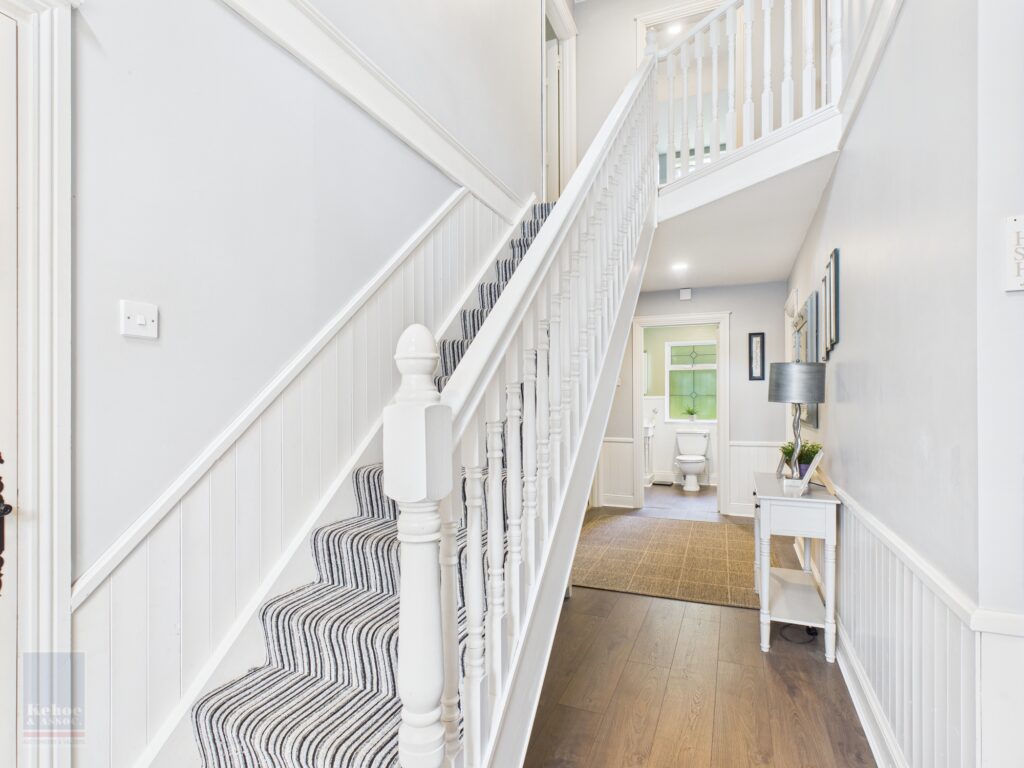 | Entrance Hallway | 6.67m x 1.88m | Laminate flooring, wall panelling and stairwell to first floor. |