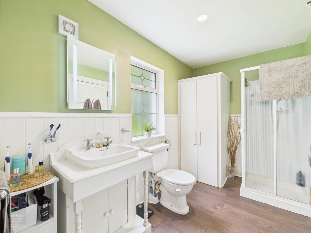 | Jack & Jill Ensuite / Guest W.C. | 3.28m x 1.89m | Laminate flooring, wall panelling, w.h.b. with vanity unit, w.c., shower stall with Triton AS2000XF electric shower with tiled surround, plumbed for washing machine and dryer. |