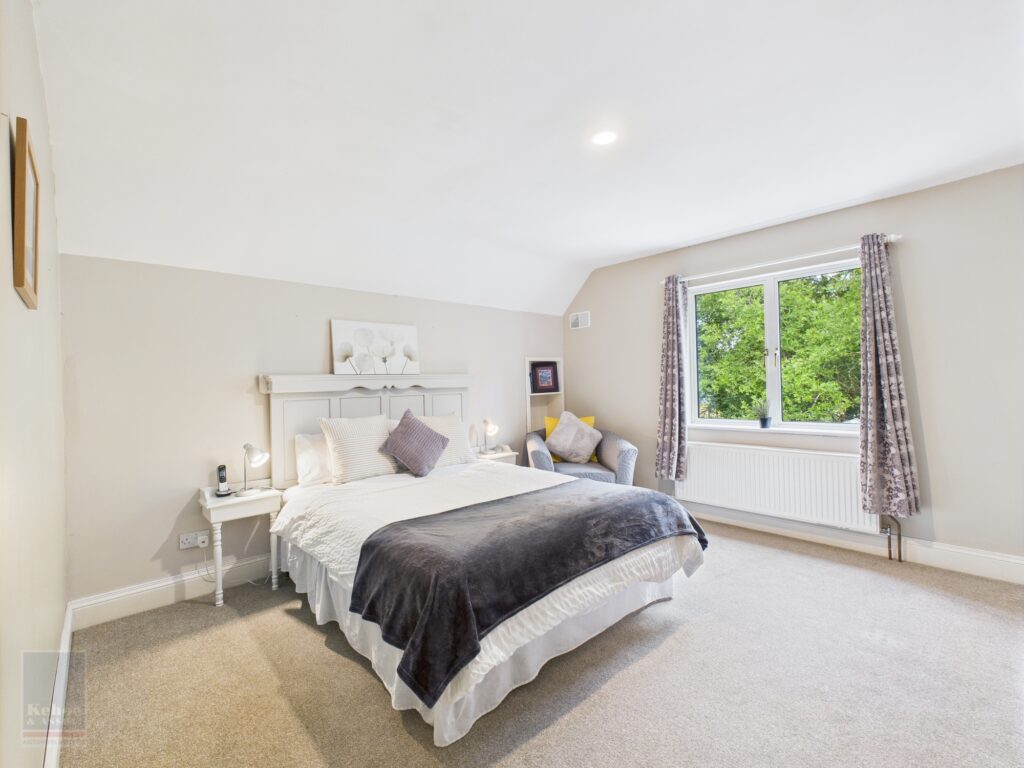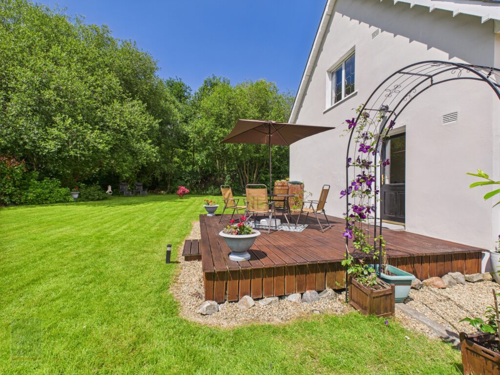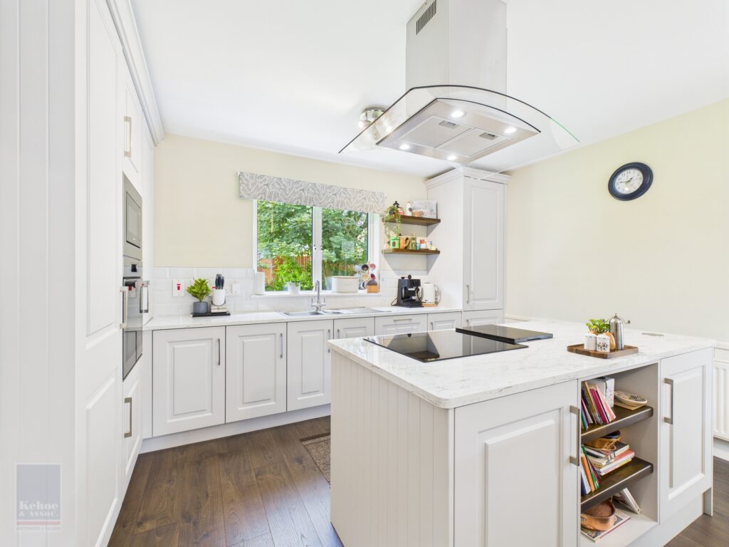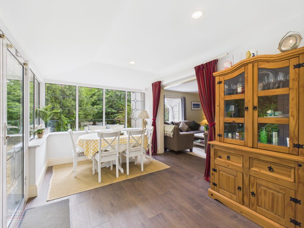 The house has been meticulously maintained and thoughtfully upgraded by its current owners. A full kitchen refurbishment was completed in January 2024, introducing a stylish new kitchen with island unit, integrated appliances. New flooring and new carpets have also been fitted, ensuring the property is presented in truly turnkey condition. Internally, the layout is both functional and family-friendly. A welcoming entrance hall with elegant wall panelling sets the tone, leading into the cosy kitchen and living area featuring a raised open fireplace. The living area flows seamlessly through an open archway into the dining area, where French doors open to the garden. The ground floor also features two generously proportioned double bedrooms, including one with a Jack & Jill en-suite that conveniently doubles as a guest W.C. A notable highlight is the fourth bedroom, which benefits from direct access onto a westerly-facing patio and decking area, offering a peaceful outdoor retreat ideal for al fresco dining and entertaining.