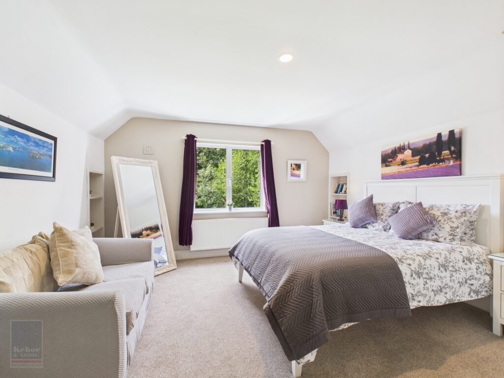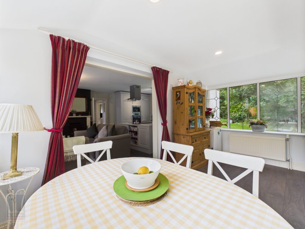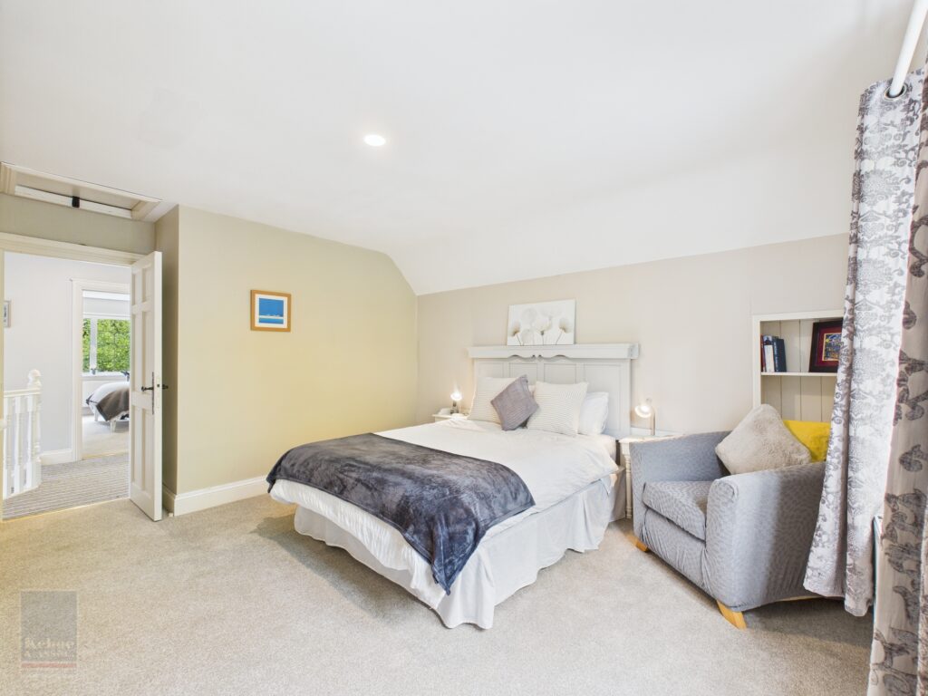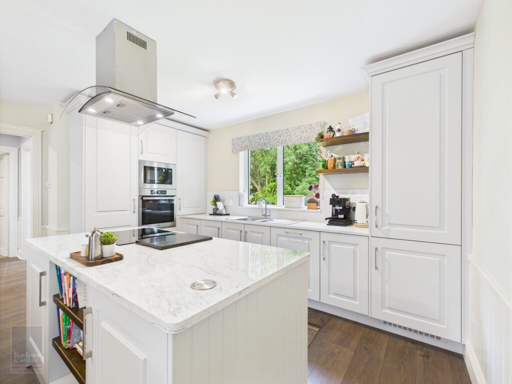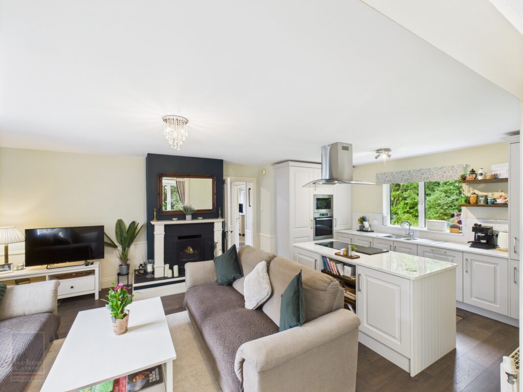 The house has been meticulously maintained and thoughtfully upgraded by its current owners. A full kitchen refurbishment was completed in January 2024, introducing a stylish new kitchen with island unit, integrated appliances. New flooring and new carpets have also been fitted, ensuring the property is presented in truly turnkey condition. Internally, the layout is both functional and family-friendly. A welcoming entrance hall with elegant wall panelling sets the tone, leading into the cosy kitchen and living area featuring a raised open fireplace. The living area flows seamlessly through an open archway into the dining area, where French doors open to the garden. The ground floor also features two generously proportioned double bedrooms, including one with a Jack & Jill en-suite that conveniently doubles as a guest W.C. A notable highlight is the fourth bedroom, which benefits from direct access onto a westerly-facing patio and decking area, offering a peaceful outdoor retreat ideal for al fresco dining and entertaining.