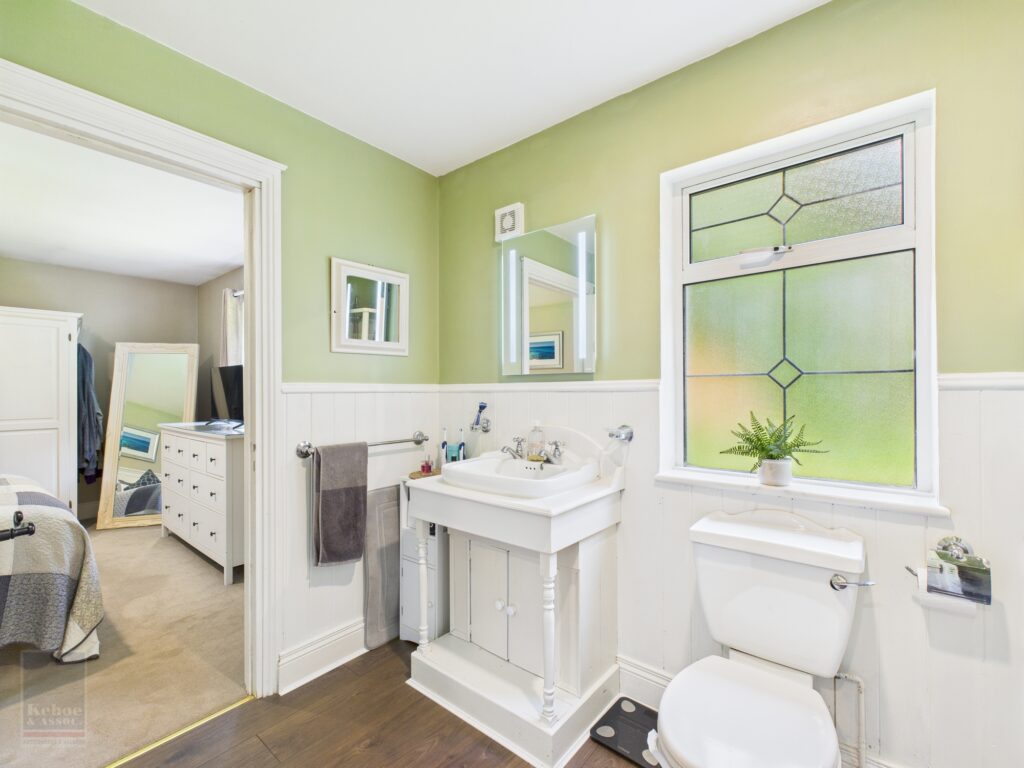 | Family Bathroom | 2.98m x 1.89m | Lino flooring, wall panelling, bath, w.c., w.h.b. with vanity unit, shower stall with Triton AS2000XF and tiled surround. |
