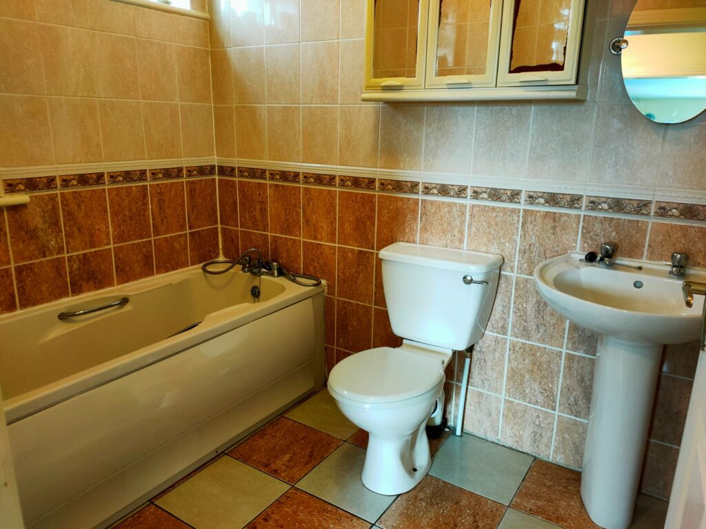 Family Bathroom 2.36m x 1.70m Fully tiled, bath with mixer taps, w.c. and vanity w.h.b.