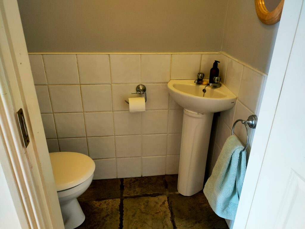 Guest W.C. 1.55m x 0.76m Tiled floor, part tiled wall, w.c. and w.h.b.