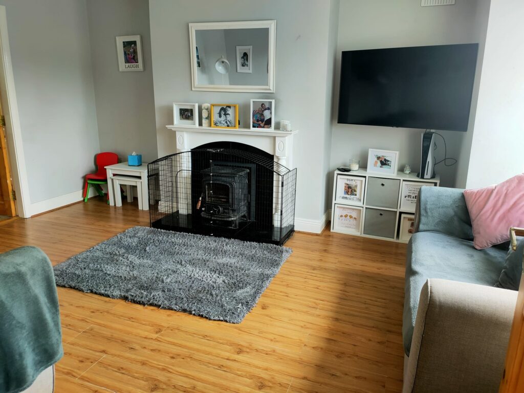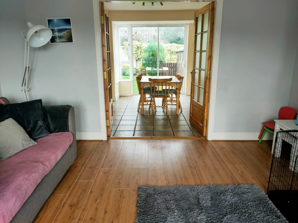 Entrance Hallway 4.79m x 1.40m Laminate floor, staircase to first floor and understairs hotpress.