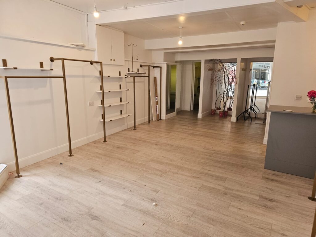 Open Plan Retail Area 9.48m x 4.38m (max) Laminate floor.