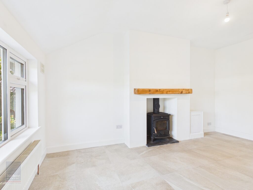 Sitting Room 4.99m x 3.29m Tiled flooring throughout, large window overlooking front garden and easterly facing patio, feature Stanley stove with back boiler and timber mantel overhead. Vaulted ceiling , electrical points.