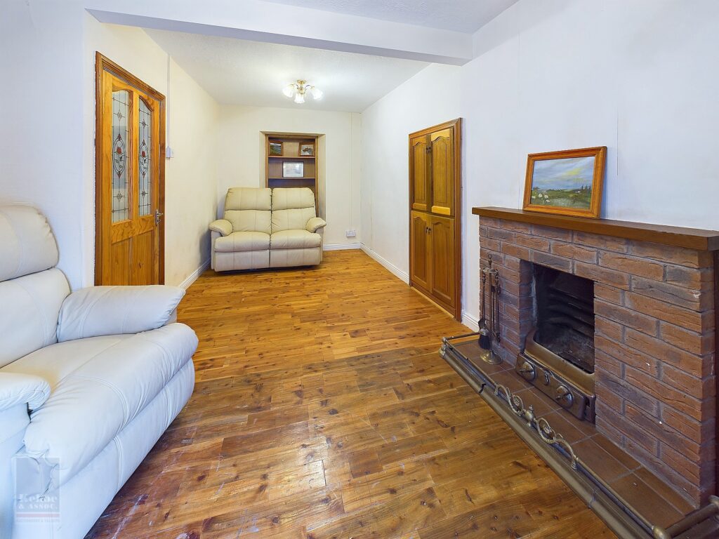 | Sitting Room | 5.10m x 3.06m | Brick open fireplace, built-in storage presses, shelving and laminate floor. |