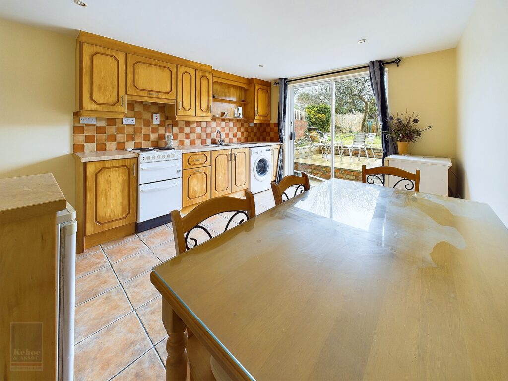 | Kitchen | 4.08m x 3.42m | With built-in floor and eye level units, electric cooker, plumbing for washing machine, part tiled walls, tiled floor and sliding patio doors to outside. |