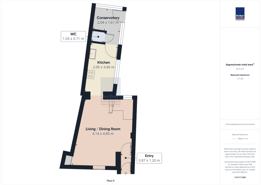 | Conservatory | 2.17m x 1.60m | With tiled floor and door to outside. |