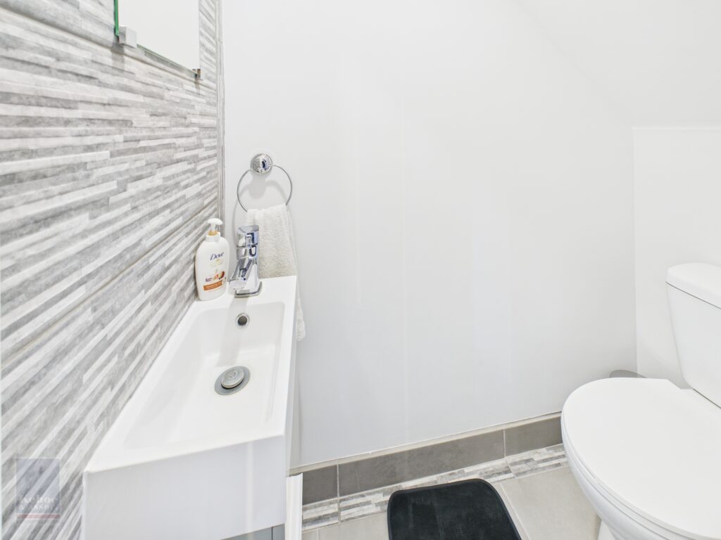 Guest w.c 1.5m x 0.76m Tiled flooring, tiled wall, w.h.b with cabinetry underneath and w.c all newly installed in 2022.