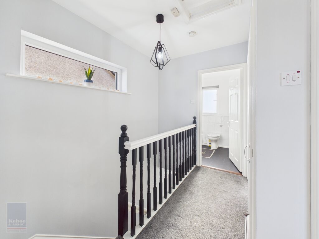 Landing Space 2.77m x 1.91m Carpeted flooring throughout, hatch to attic overhead with drop ladder, hot-press with ample open shelf storage space, window elevated for privacy allowing natural light in to the hallway.