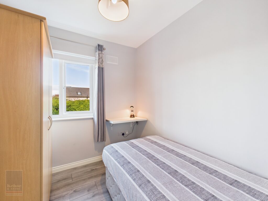 Bedroom 3 2.71m x 2.18m Timber laminate flooring, wall mounted desk space with plug points and USB connections, double wardrobe, single bed included with privacy pocket on headboard, large window overlooking rear garden with Cromwellsfort stone walls.