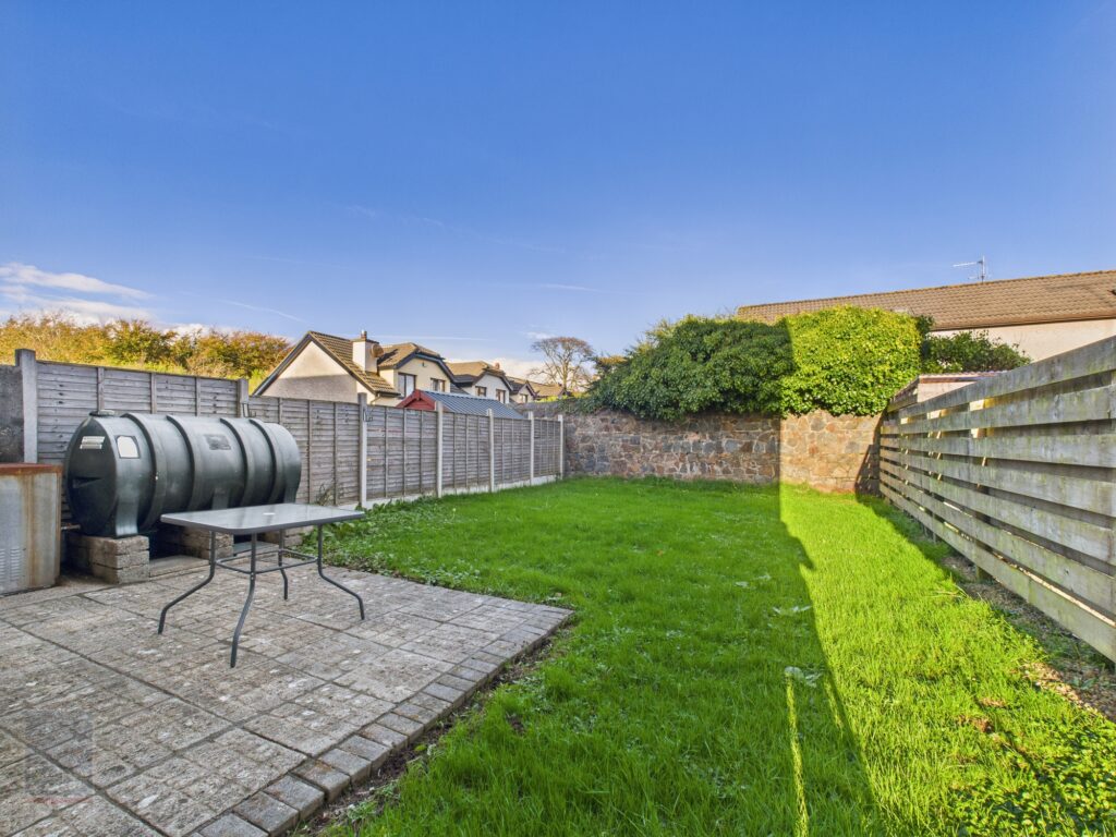 South easterly facing patio with the original old stone walls of Cromwellsfort to the rear garden