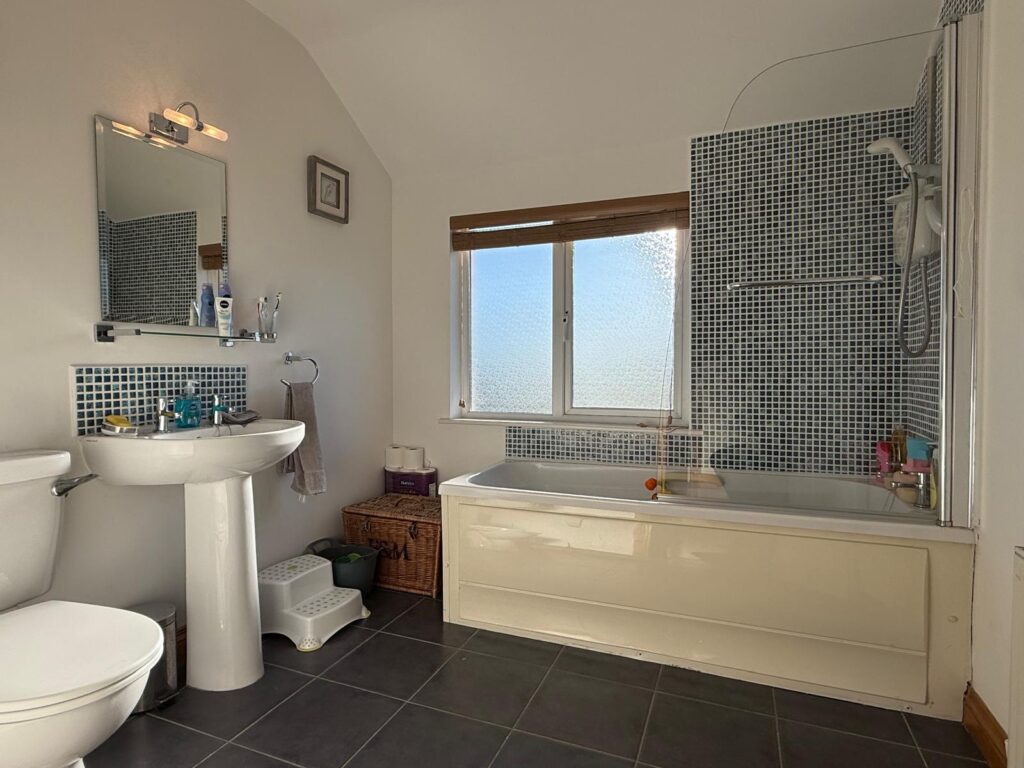 | Family Bathroom | 2.38m x 2.35m | Tiled flooring, bath with mosaic tile surround, Triton T90xr electric shower overhead, w.h.b with mosaic tile splashback, glass shelf with lighting overhead and w.c. |