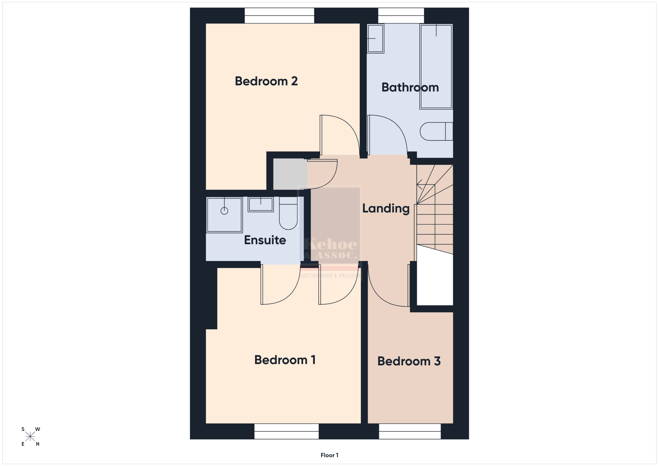 | Ensuite | 2.05m x 1.35m | Tiled shower stall with electric shower, w.c. and w.h.b. |