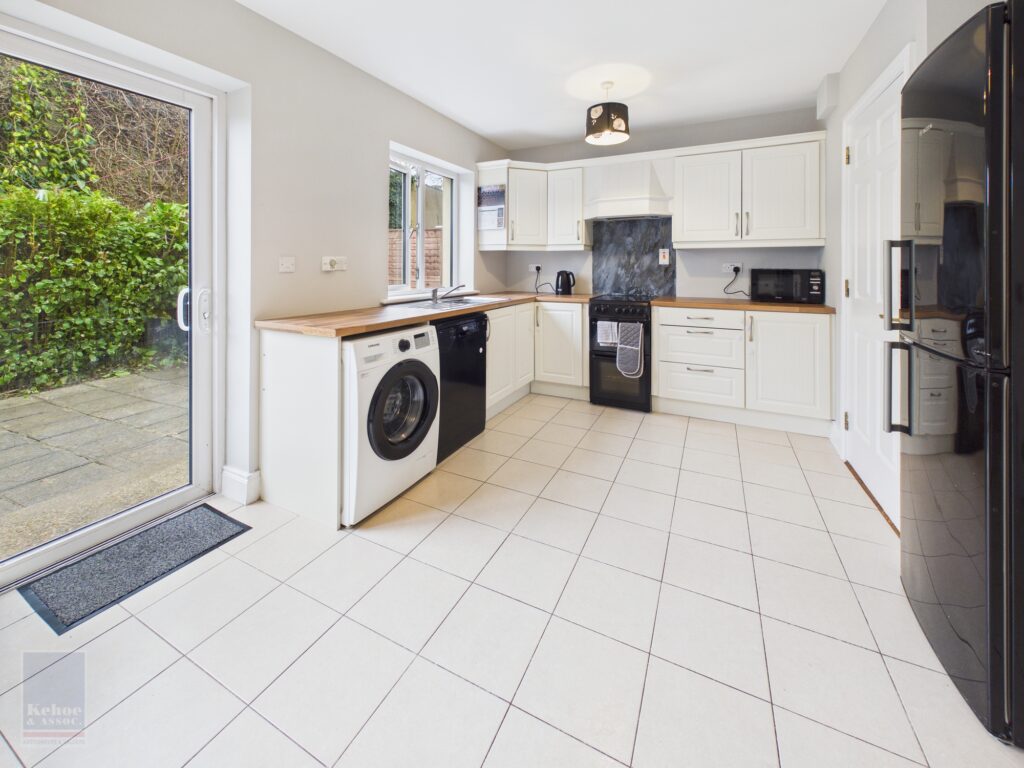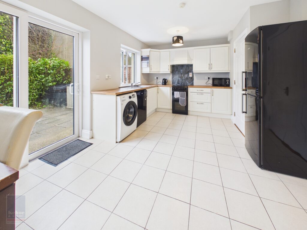 | Kitchen/Dining Area | 5.14m x 3.35m | With excellent range of built-in floor and eye level units, electric cooker, extractor, plumbing for dishwasher and washing machine, tiled floor and sliding patio doors to rear garden. |