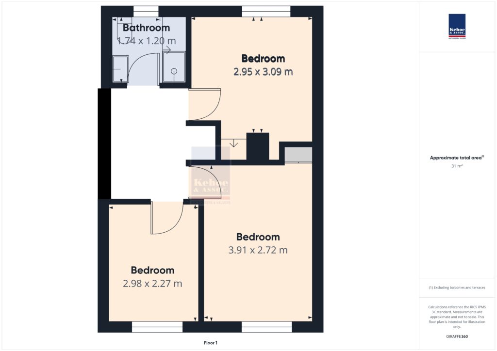 | Bedroom 1 | 3.98m x 2.75m | With storage closet. |