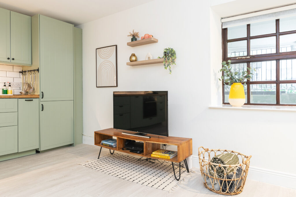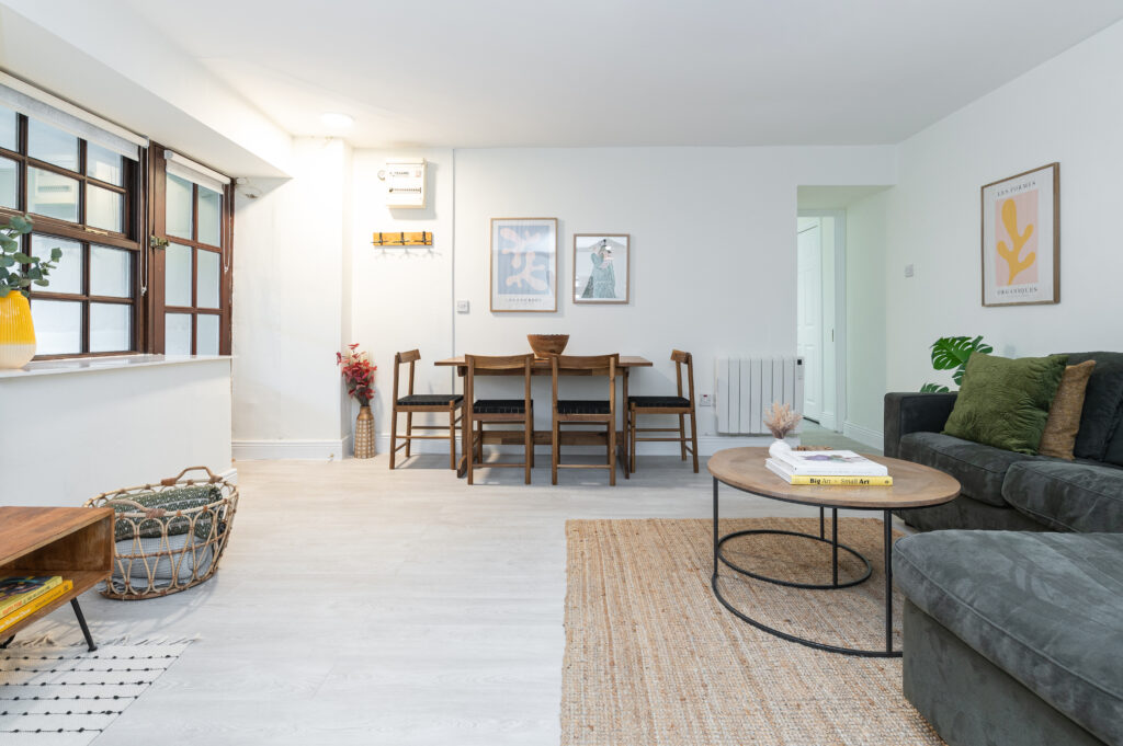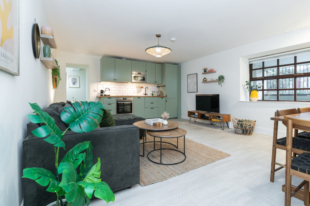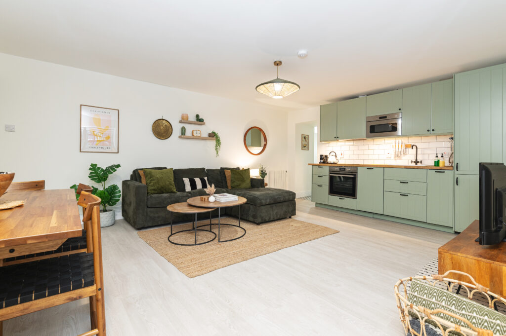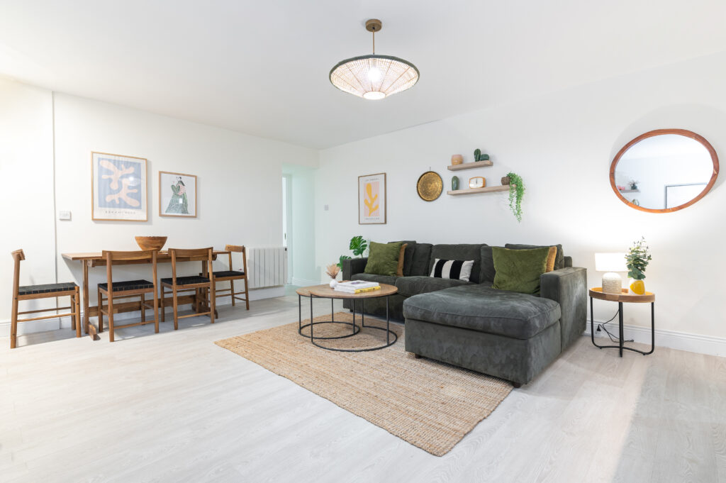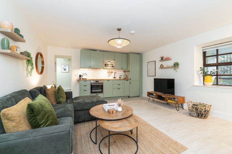 This apartment has own door access and is entered via a small private patio area to the front. Newly refurbished with modern fitted kitchen, contemporary shower rooms, quality flooring and new energy efficient electric heating. Professional Interior Designer finish, decorated in an attractive neutral pallet and furnished to an exceptionally high standard with meticulous attention to detail. Generously proportioned accommodation with open plan kitchen/dining/living room, utility room, two double bedrooms(one ensuite) and shower room. Ample communal parking.