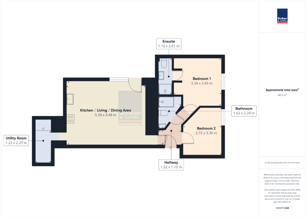 | Shower Room | 2.36m x 1.68m (max) | Fully tiled, walk-in shower, w.c. and vanity w.h.b. |