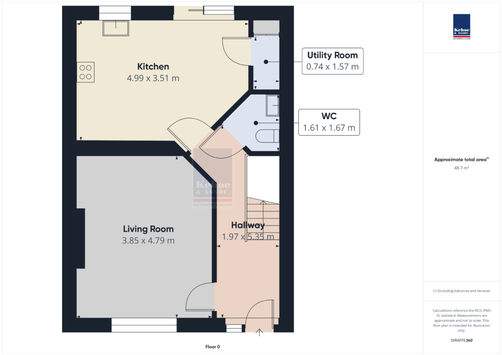 | Utility Room | 0.81m x 1.57m | Built-in cabinets, tiled floor and door with access to rear garden. |