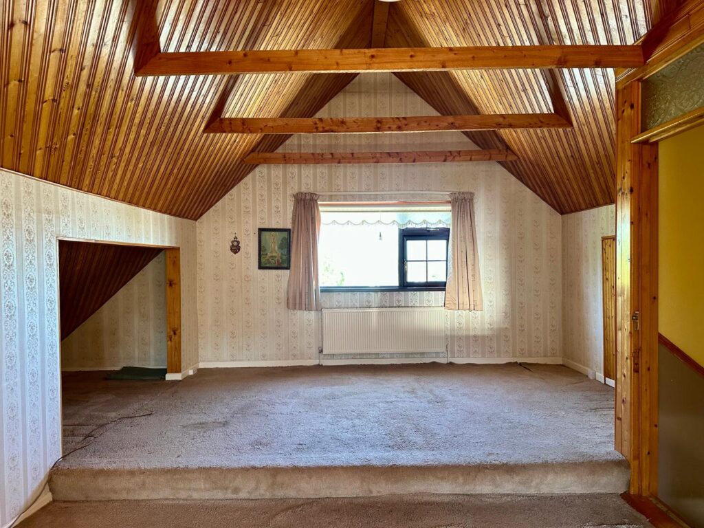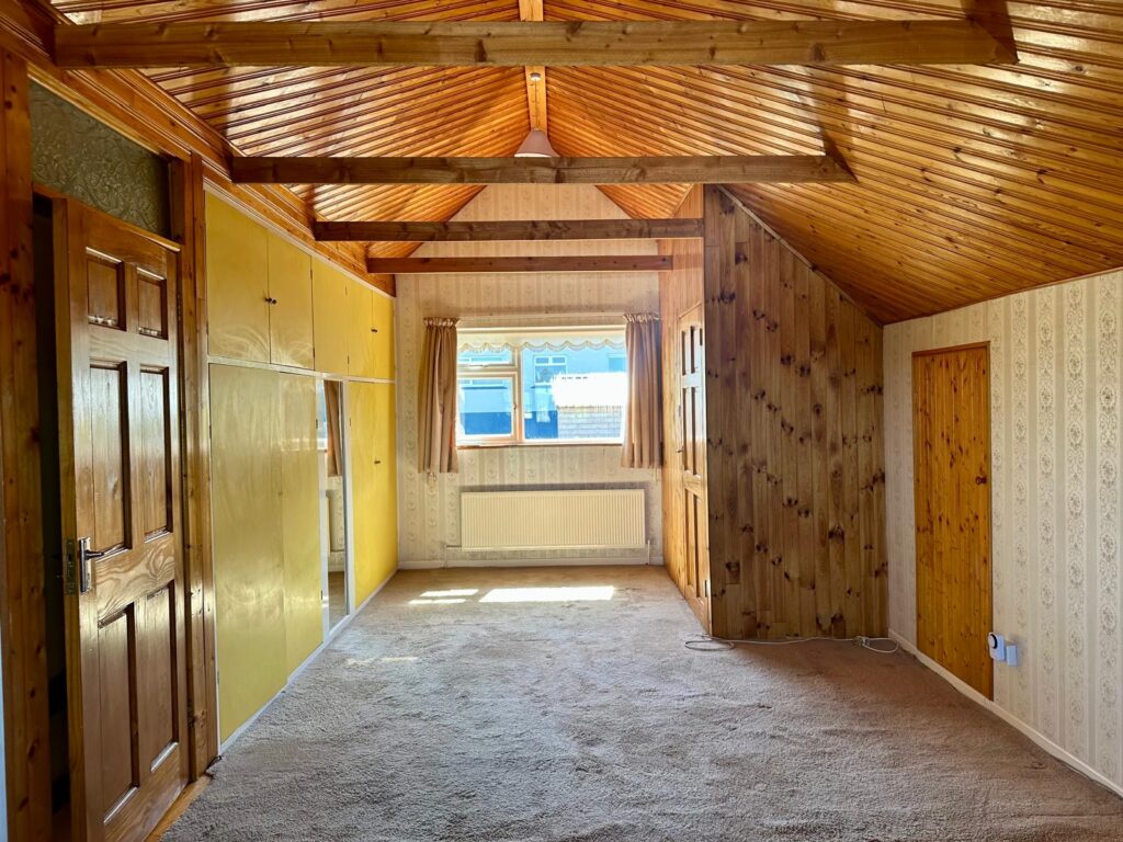 | Large Bedroom | 7.45m x 4.18m | Dual aspect with carpeted flooring. Split level with a step towards the front of house window where the expansive view of the river Slaney estuary can be seen, to the south side of the property is a large amount of built in wardrobes with ample space behind and attic access to the eaves. |