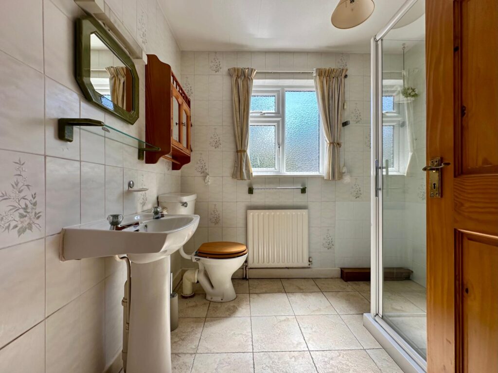 | Family Bathroom | 2.41m x 2.20m | Tiled flooring, enclosed shower with Triton electric Shannon shower, w.h.b. and w.c, floor to ceiling tile surround and window facing on to rear garden. |