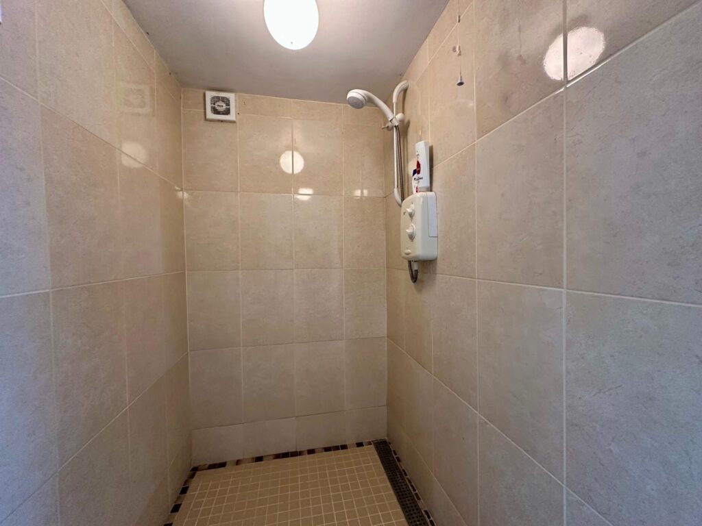 | Shower Room | 1.50m x 1.17m | Mosaic tiled floor, stainless steel drain, floor to ceiling tiled surround, electric Triton T80 SI shower and Dimplex heater. |