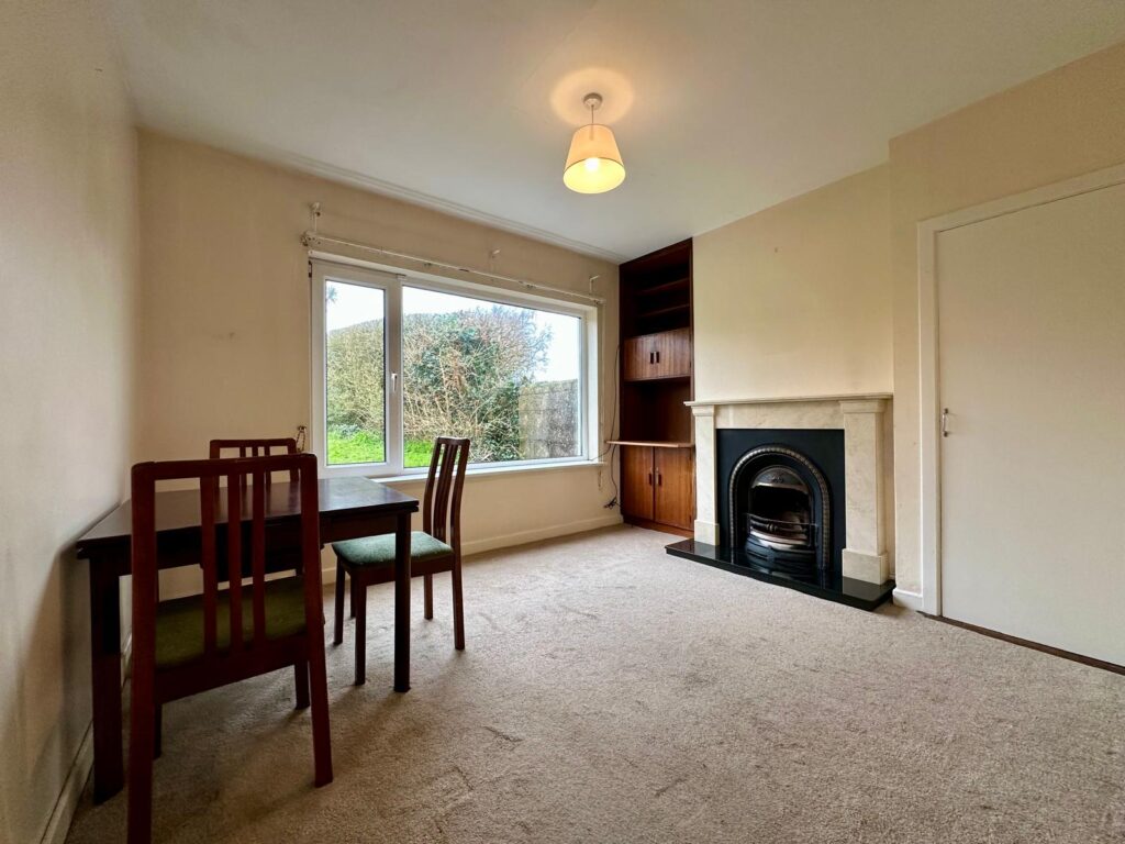 | Sitting Room | 4.82m x 3.58m | Carpeted flooring. Feature open fireplace with cast iron insert and marble surround and granite stone hearth. Large windows overlooking front gardens. Built in display cabinet and storage space. Door leading to |