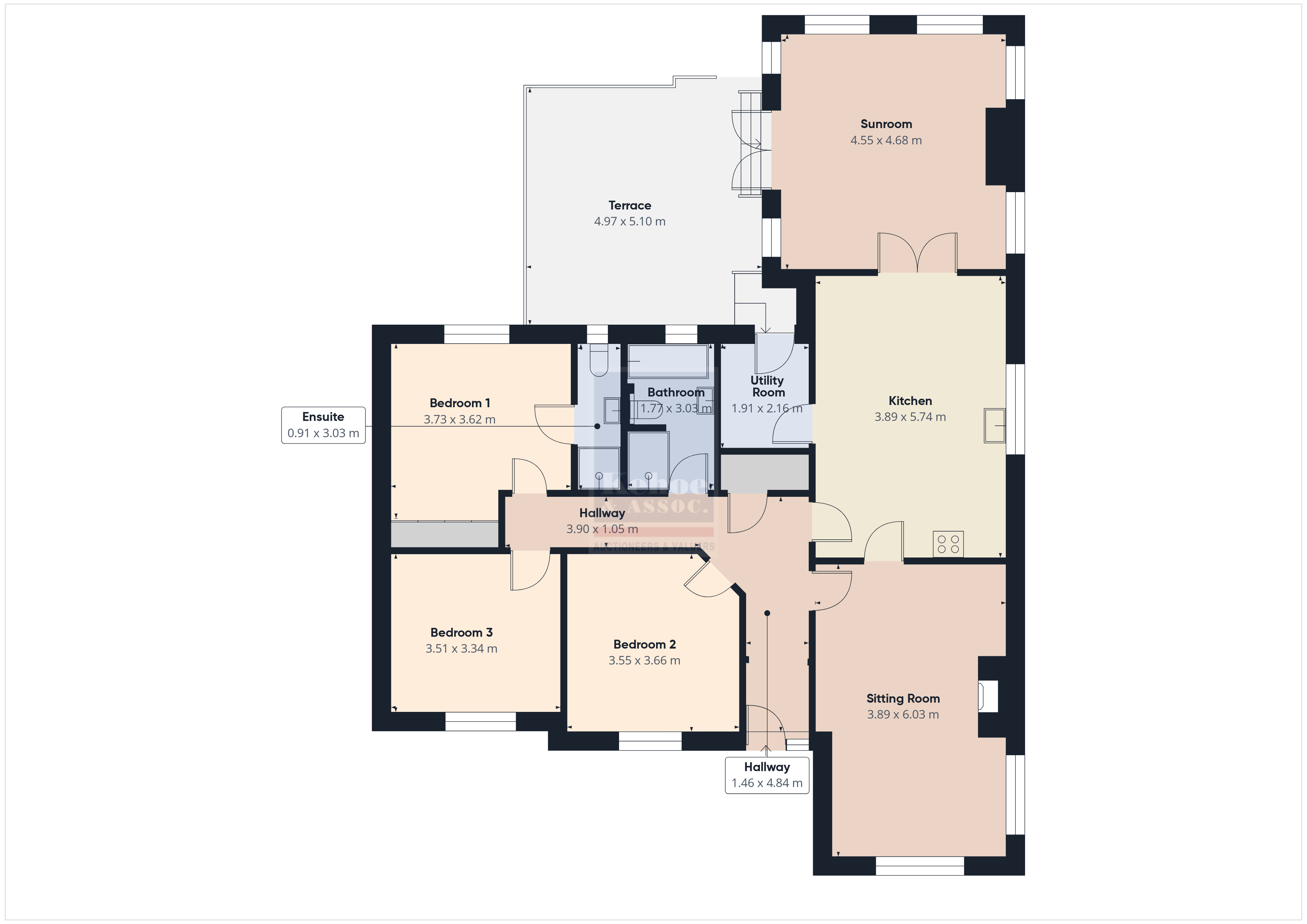 Bedroom 1 3.73m x 3.62m With excellent range of built-in wardrobes and shower room ensuite.