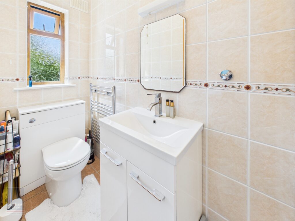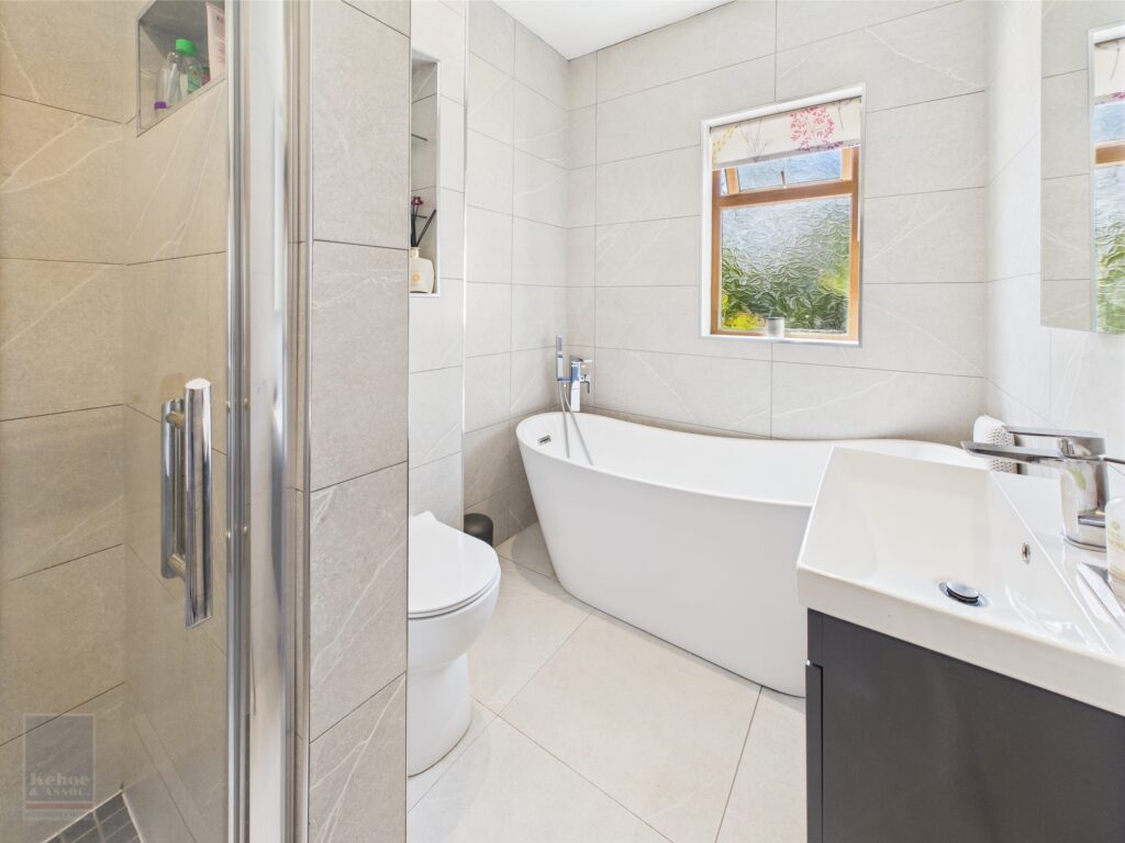Bathroom 3.03m x 1.79m Fully tiled, bath with mixer taps, w.c., vanity w.h.b. and shower stall with rainforest shower.