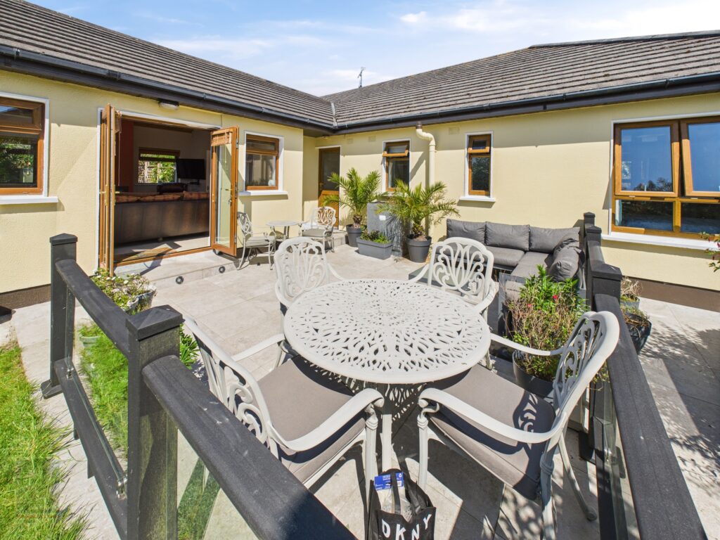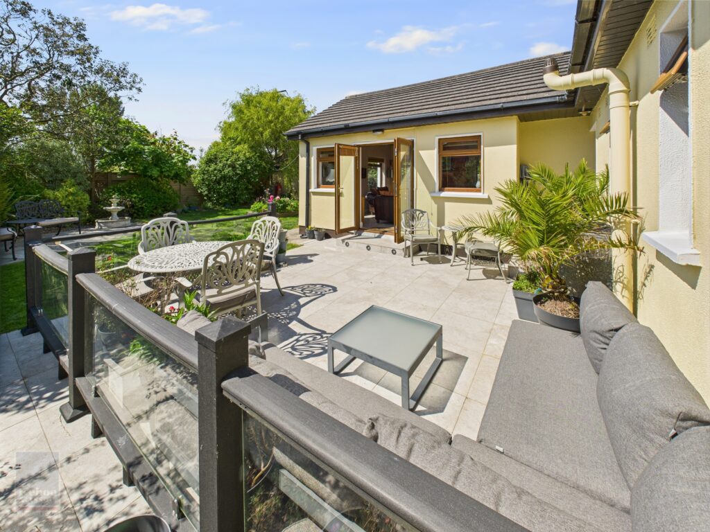 Garden to the front with extensive brick drive offering ample carparking.  Fabulous south facing rear garden with extensive porcelain paved patio area, the true definition of a room outside.  Exceptionally private garden with a carefully chosen collection of flowering plants, shrubs and ornamental trees providing a wealth of colour.  Sheltered westerly facing patio and secret garden.  Garden shed 2.48m x 2.93m with roller shutter door, lights, power sockets and fitted storage presses.  Outdoor power sockets and water taps in the side and rear gardens.