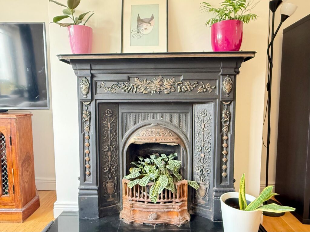 Sitting Room 4.94m x 4.52m Timber flooring throughout, open fireplace with cast iron insert and granite stones tiles, large window overlooking south facing rear garden, recess lights and coving.