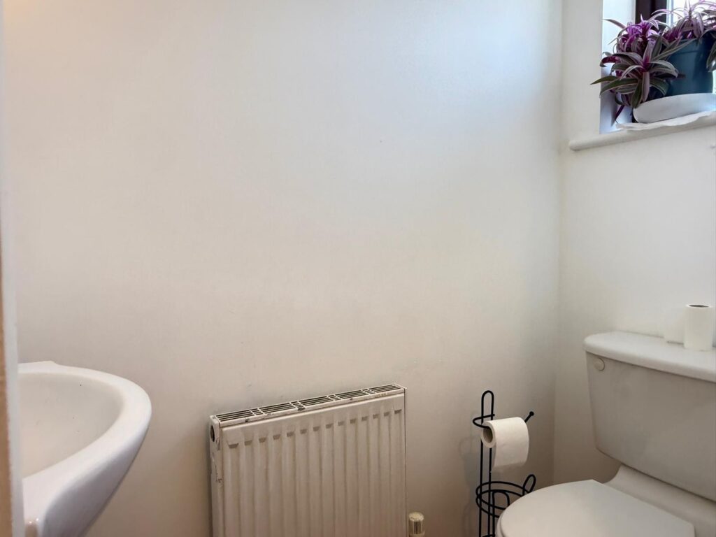 Guest Bathroom 1.80m x 0.87m Tiled flooring w.h.b with built in cabinetry and tiled splashback, w.c.
