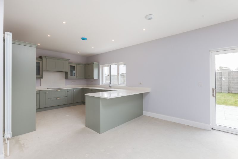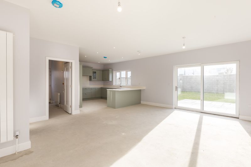 The heart of the home is the high-quality fitted kitchen, a stylish and functional space ideal for family living and entertaining. Generous worktops, excellent storage, and premium appliances merge with an open, contemporary layout that flows naturally into the dining and living areas. Large windows and carefully planned lighting maximise natural brightness throughout.