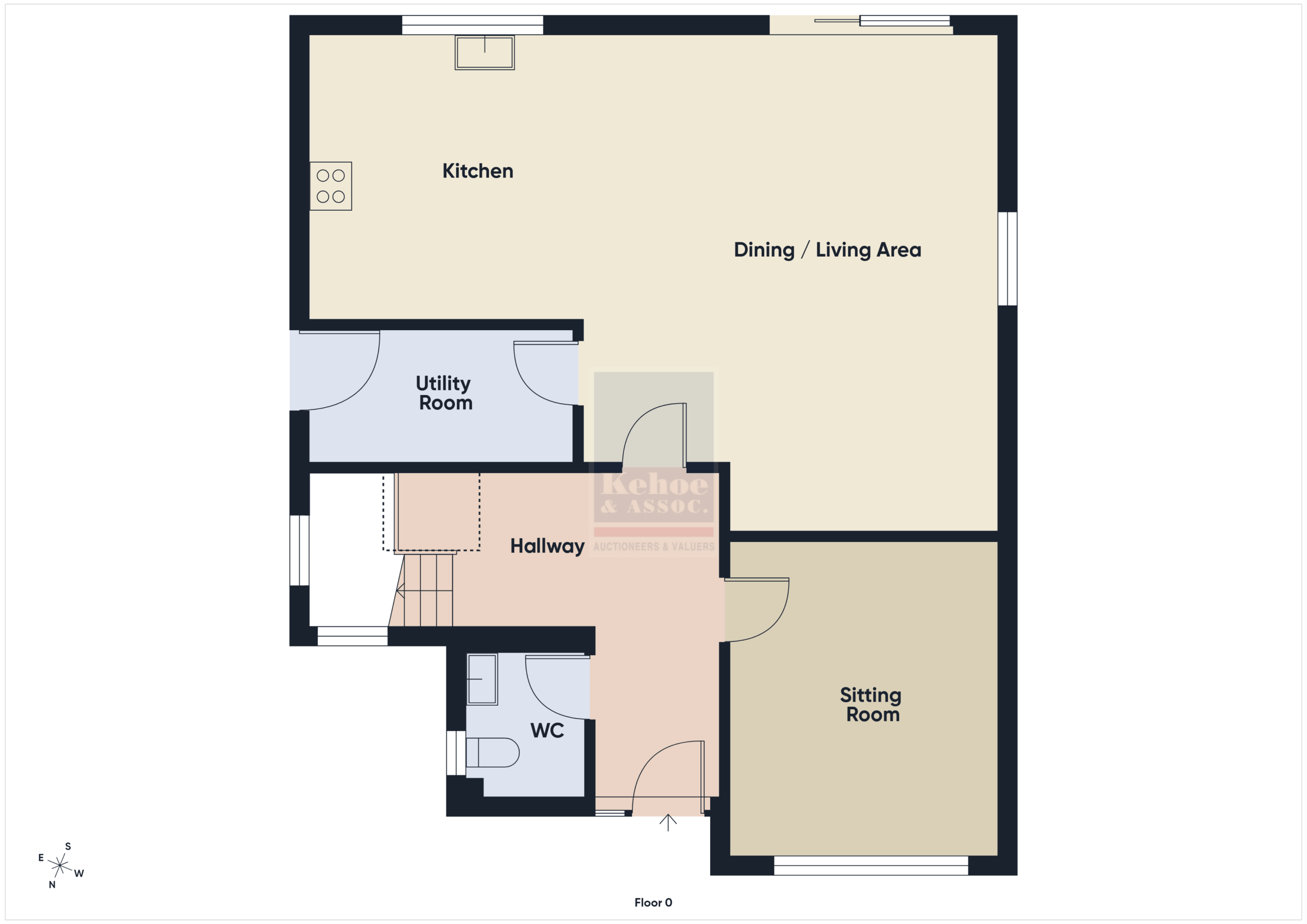 | Guest W.C. | 2.00m x 1.53m | With w.c., fitted vanity unit with free-standing w.h.b., tiled floor and half wall.