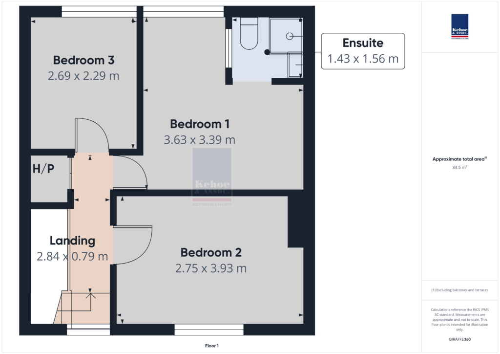 Landing 3.59m x 1.70m (max) Timber floor.