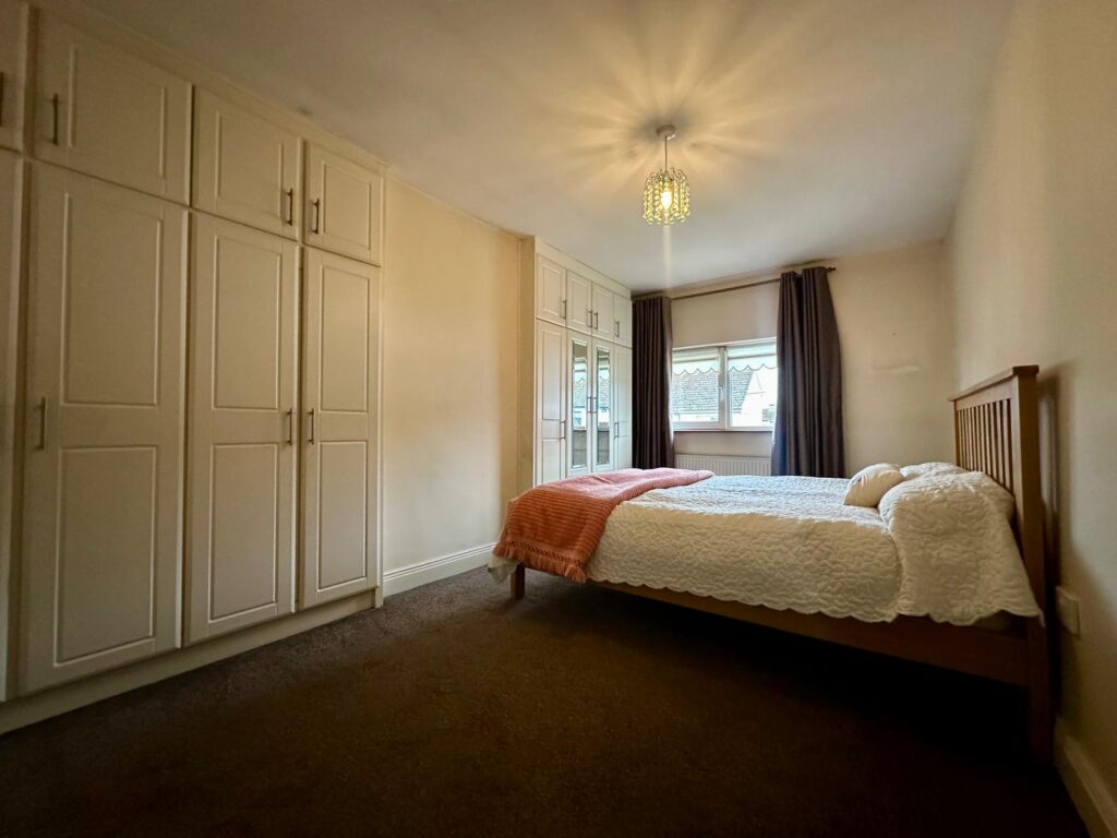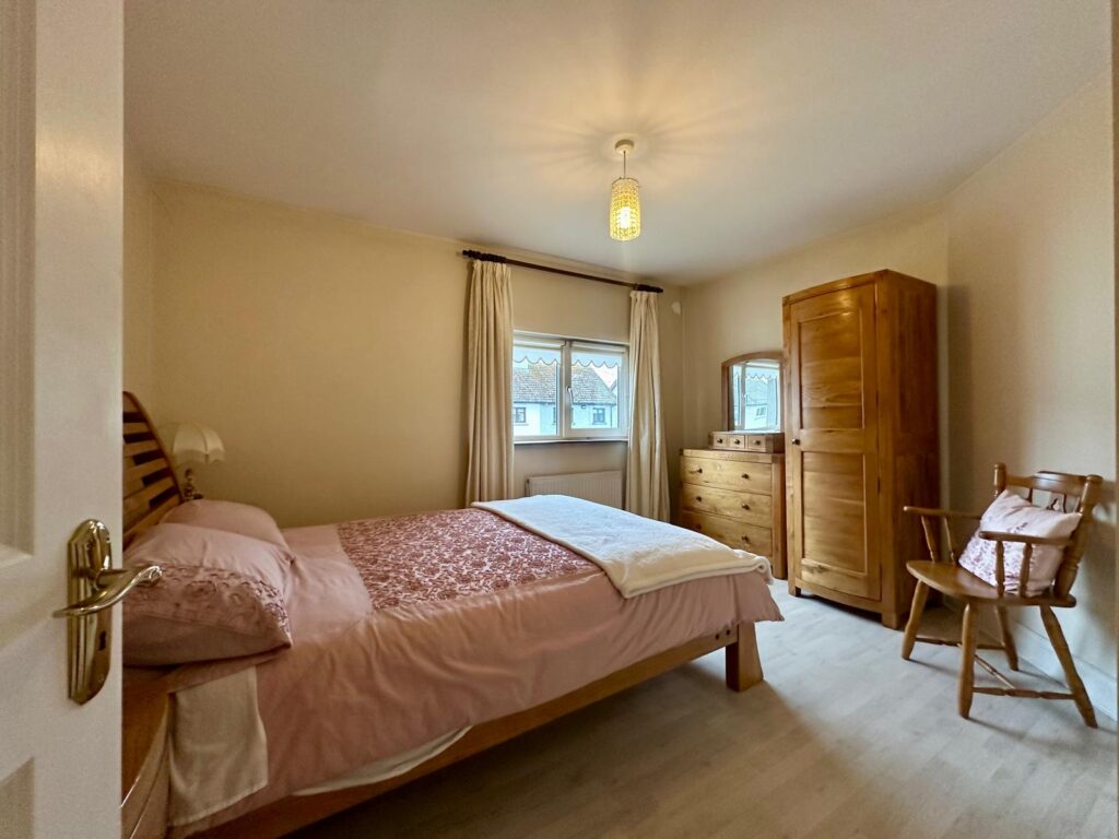 | Master Bedroom | 4.85m x 2.69m | Carpet flooring, double bay wardrobe housing hot-press and second double bay wardrobe and drawers providing large amount of storage space and large window overlooking front driveway. |