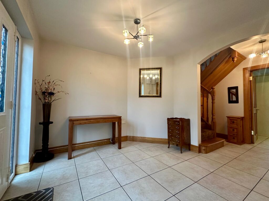 | Entrance Hall | 4.83m x 3.02m | Tiled flooring, archway leading to storage area under staircase. |