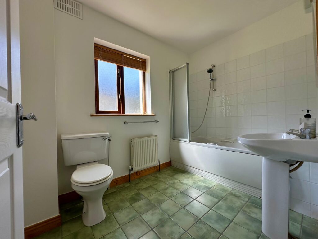 | Family Bathroom | 2.87m x 1.90m | Tiled flooring, bath with tile surround and wall mounted shower head from bath faucet, w.h.b. with tiled splashback and lighting overhead, w.c., privacy glazed window overlooking from garden. |