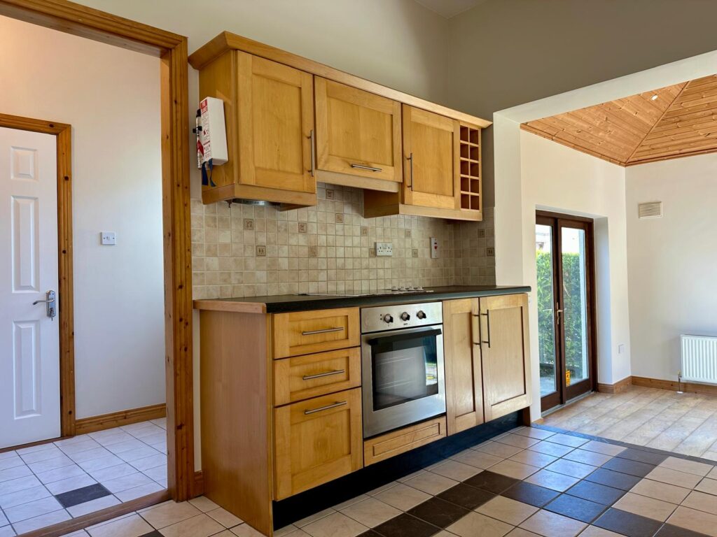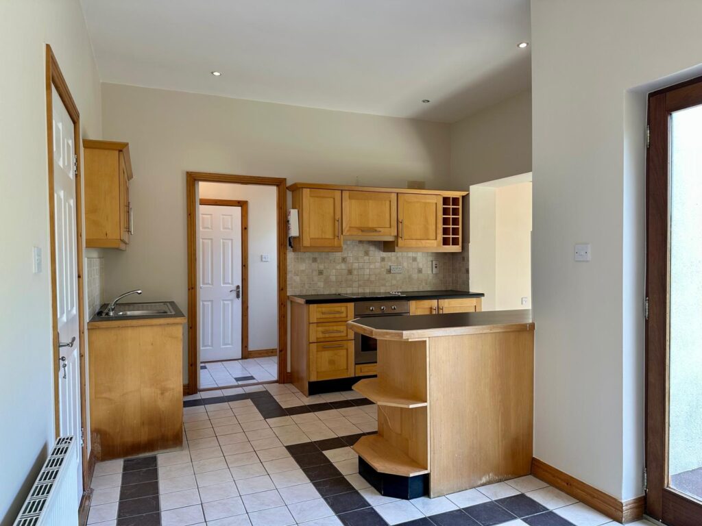 | Open Plan Kitchen/Dining Room | 5.67m (max) x 3.67m (max) | Tiled flooring throughout, from the dining area, double French doors leading down to the south facing patio, fully fitted kitchen with floor and eye level cabinets, stainless steel sink and drainers with tiled splashback, dishwasher, breakfast counter area with ample storage underneath and tiled splashback, Zanussi built in electric oven with a four-ring electric hob and extractor fan overhead. Three steps down to |