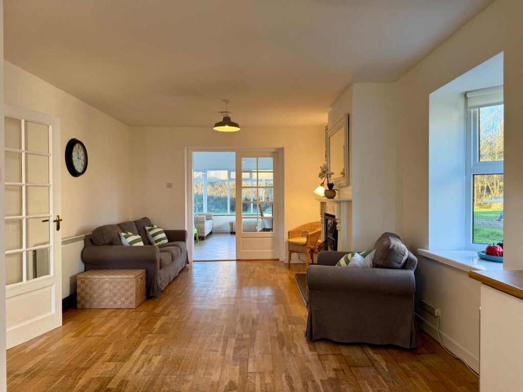 The accommodation comprises of an entrance hall, open plan living, dining and kitchen, large sunroom, three bedroom with one ensuite and a family bathroom. Off the hallway is a hot press and a separate storage closet.