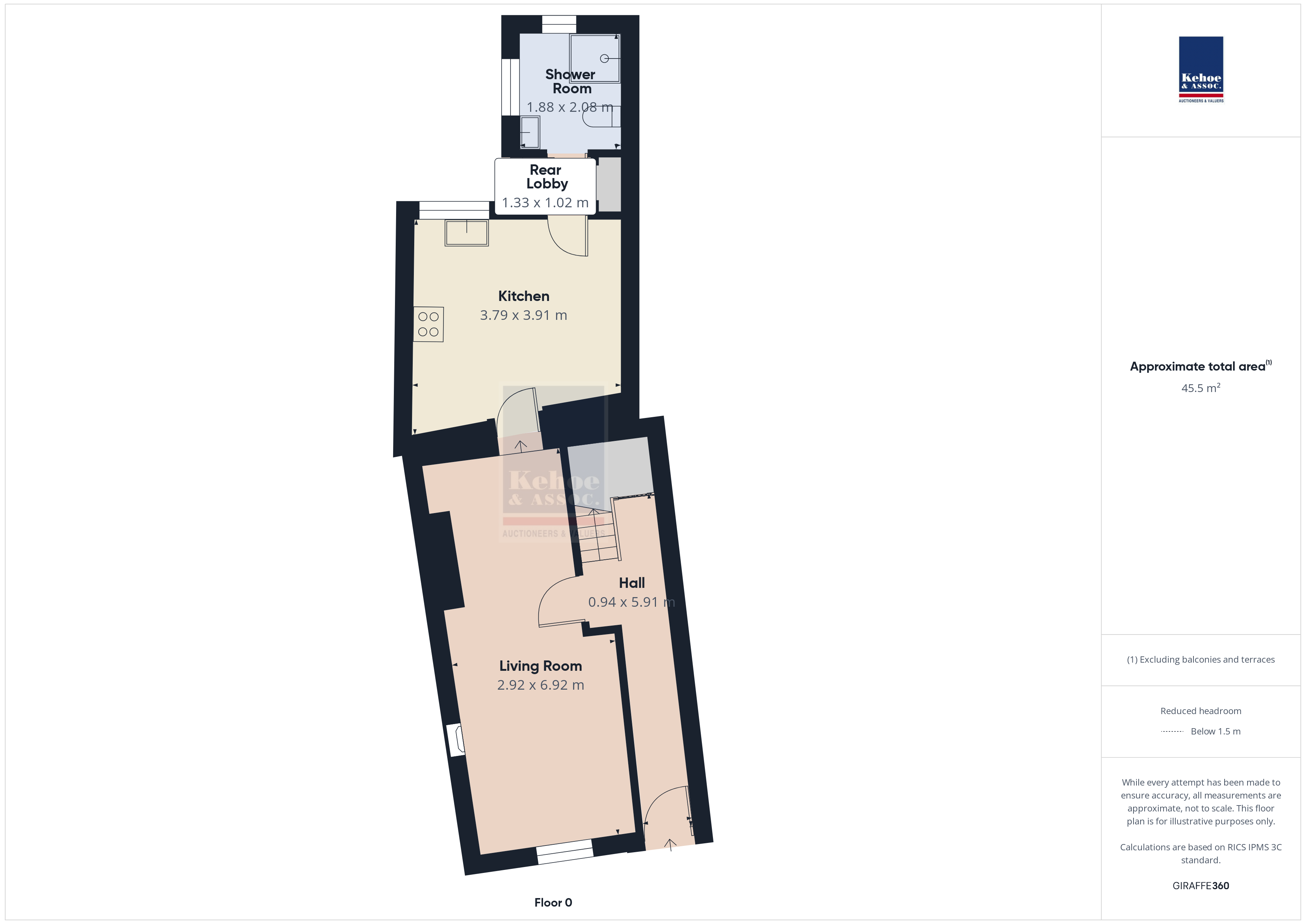 | Shower Room | 2.06m x 1.88m | Fully tiled, shower stall with electric shower, w.c and w.h.b. |