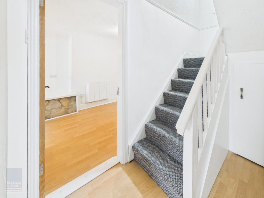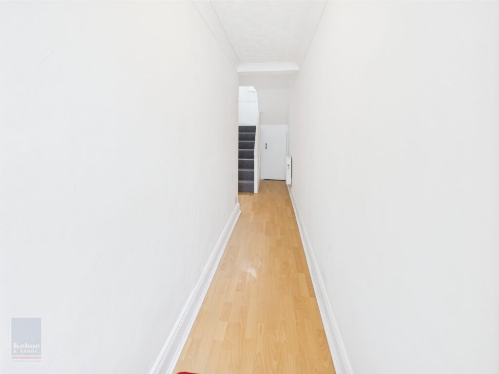 | Entrance Hall | 5.89m x 1.49m | Laminate floor and understairs storage press. |