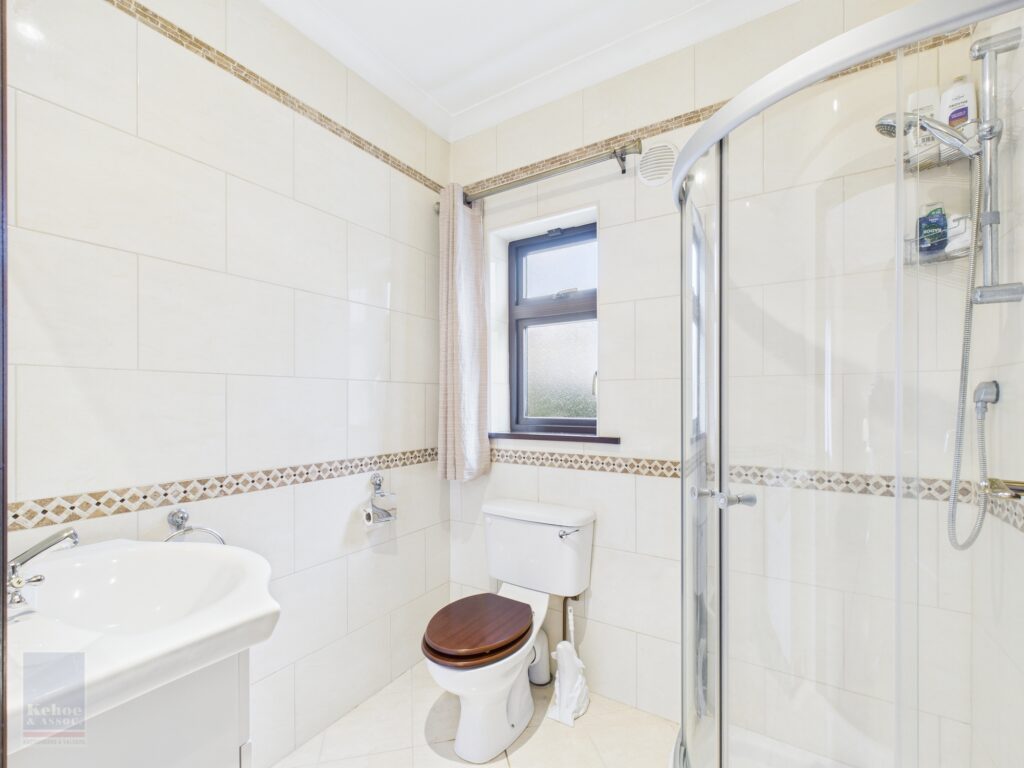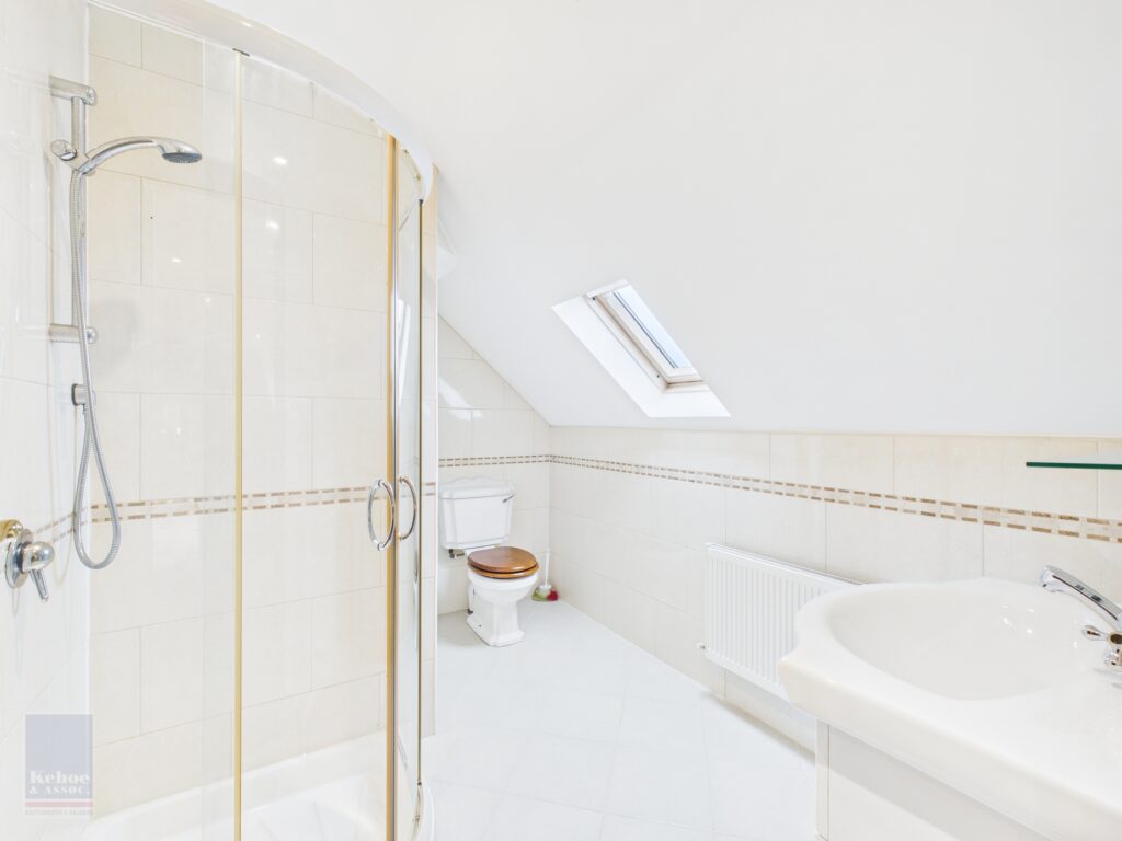 Ensuite 1.95m x 1.71m Fully tiled, ceiling coving, recessed lighting, w.c., w.h.b. with vanity unit and shower stall Triton T80xr electric shower.