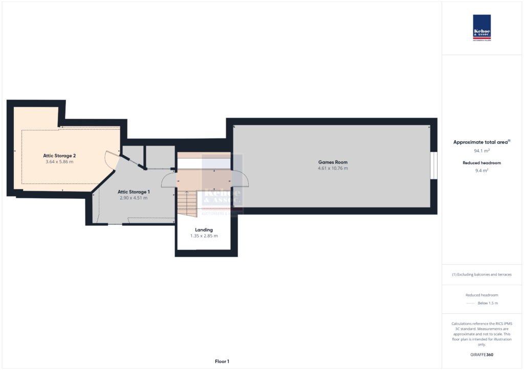 Attic Storage 1 4.38m x 3.73m Carpeted flooring.