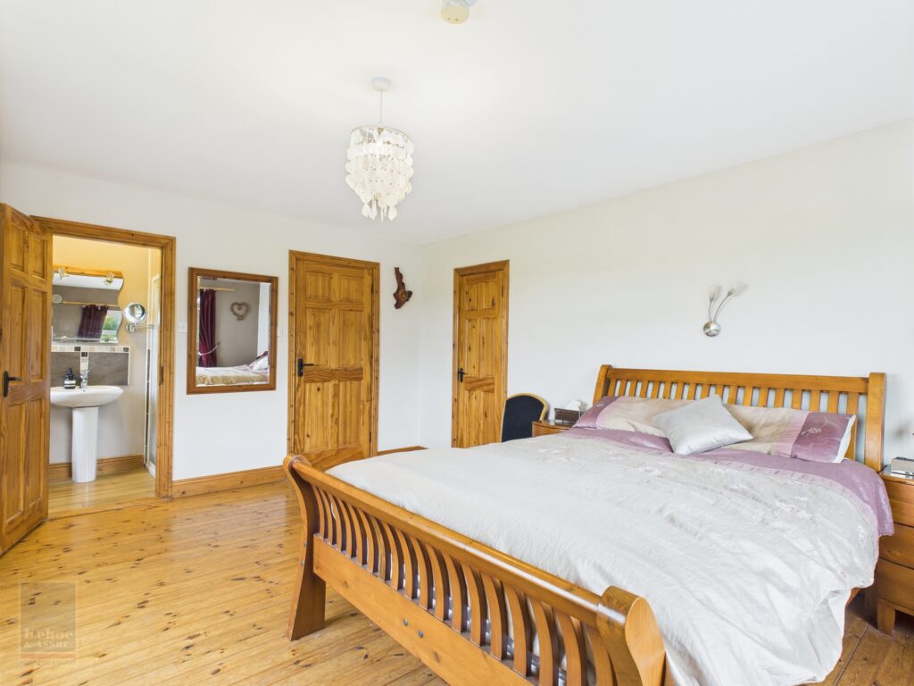 Upstairs, the accommodation continues to impress with four generously sized double bedrooms, all featuring integrated wardrobes. The master suite benefits from dual-aspect windows, flooding the room with natural light, and an en-suite bathroom. Bedroom 2 is serviced by a Jack and Jill family bathroom, shared with the rest of the first floor. With its thoughtful design, expansive site, and prime location in a vibrant community, “Cluain Na gCapall” represents a rare opportunity to acquire a true family haven.