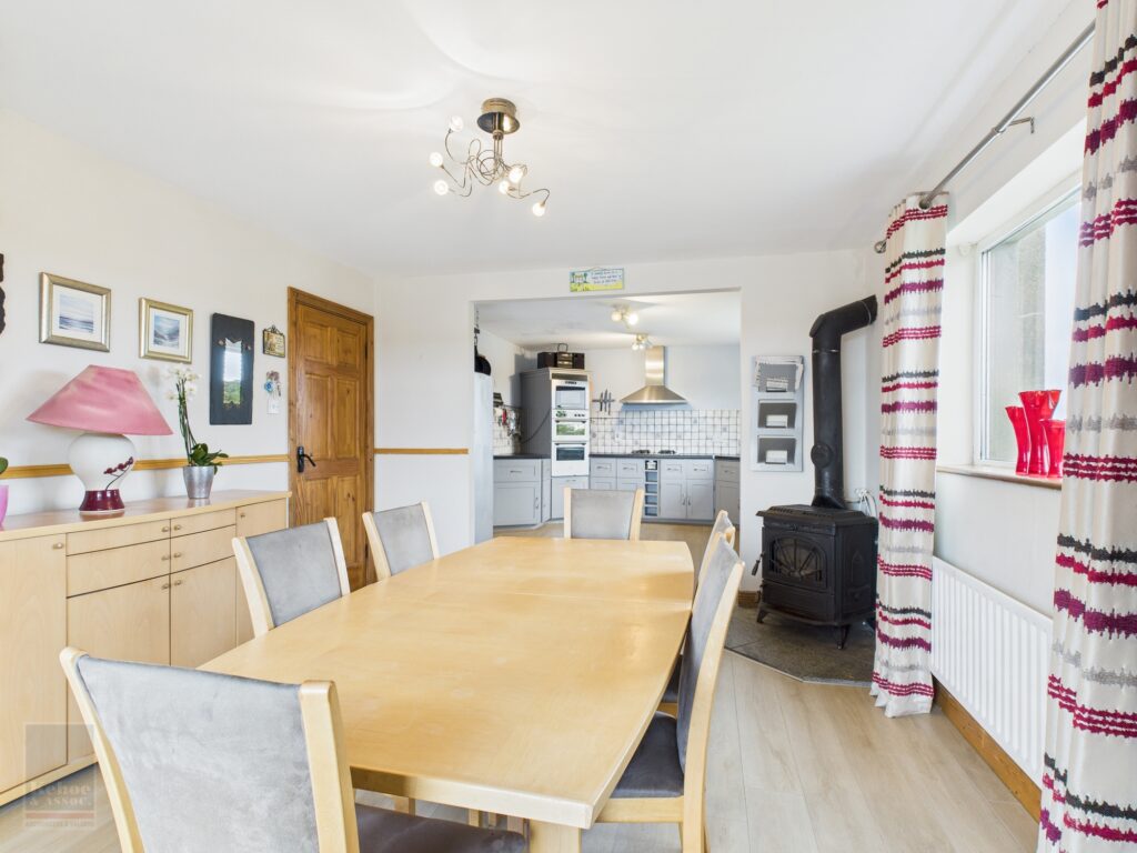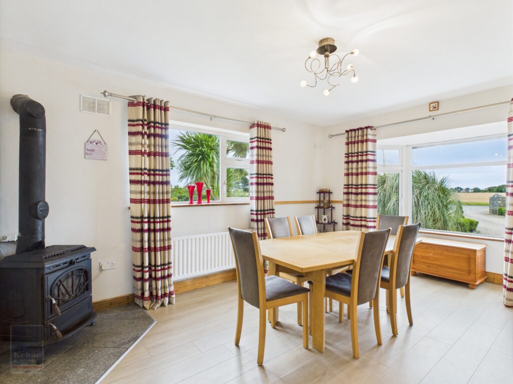 | Dining Room | 4.48m x 3.60m | Laminate flooring, solid fuel stove with granite hearth, dual aspect windows including bay window. Open archway into: |