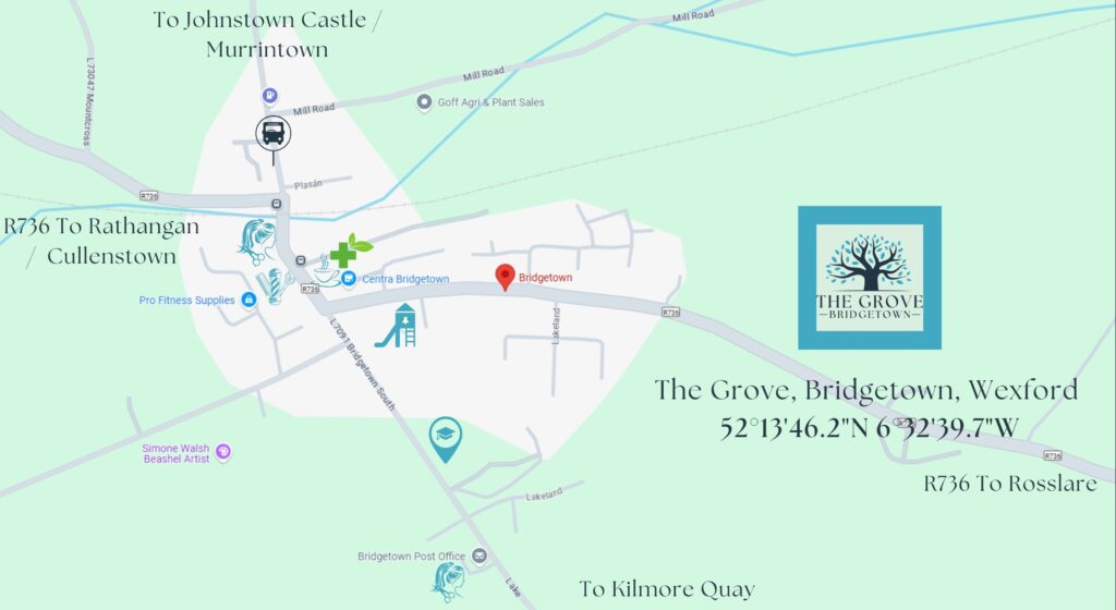 Superbly located within 5 minutes walk of everything Bridgetown village has to offer. ‘The Grove’ is situated just a short stroll from the Secondary School and within walking distance of the bus stops to Wexford town centre, making it the location of choice for families seeking large houses in a prestigious neighbourhood close to amenities. Services on your doorstep include a supermarket, coffee shop, public houses, post office, filling station, ETB Secondary School, hairdressers, barbers, pharmacy, general practitioner doctor surgery, recreational area and walking track.