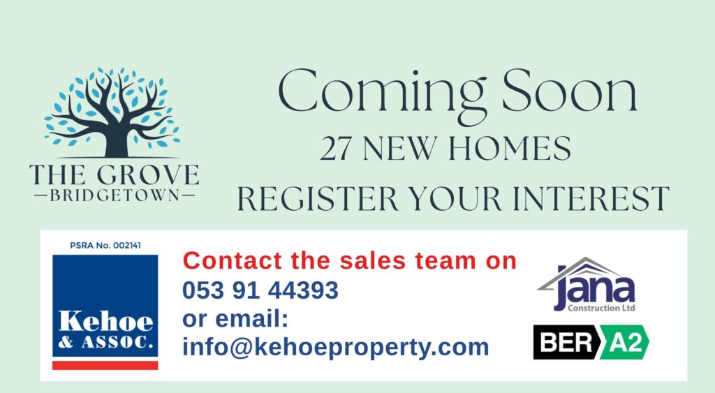 Jana Construction and Kehoe & Assoc. announce the upcoming launch of a new development of signature prestigious homes in the most sought-after Bridgetown Village neighbourhood. These magnificent houses range from three-bedroom semi detached extending to c. 111 Sq. Metres to four-bedroom detached homes extending from 132 Sq. Metres to c 150 Sq. Metres. ‘The Grove’ meets the needs for the house buyer seeking a bungalow with a wonderfully designed four-bedroom bungalow extending to c. 148 Sq. Metres.