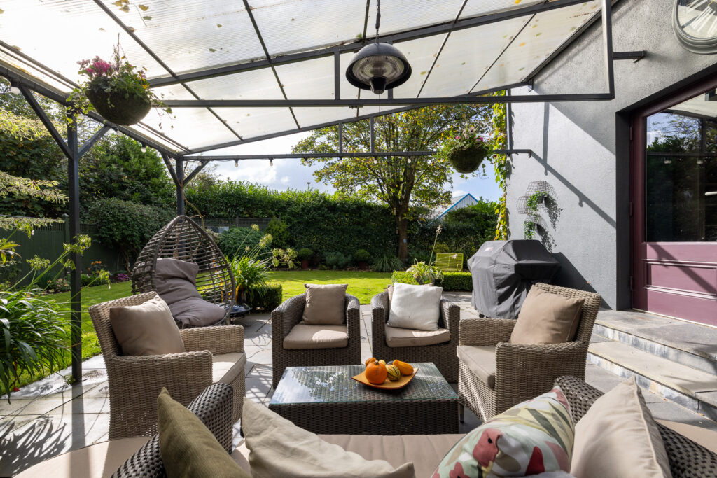 Set on a generous 0.38-acre plot, Ivella features exquisitely landscaped gardens that include a delightful pergola patio lounge area and a separate al-fresco dining area with a built-in pizza oven, perfect for entertaining. The accommodation is both expansive and elegant, beginning with a large entrance reception room that flows seamlessly into a cozy snug sitting room. A spacious family lounge grants passage to the charming library room and opens onto the sun-filled south-facing patio, creating an ideal space for relaxation and gatherings.